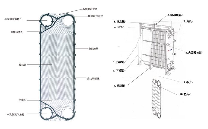板式換熱器是由框架、傳熱板片組及夾緊螺栓等主要部件組成。